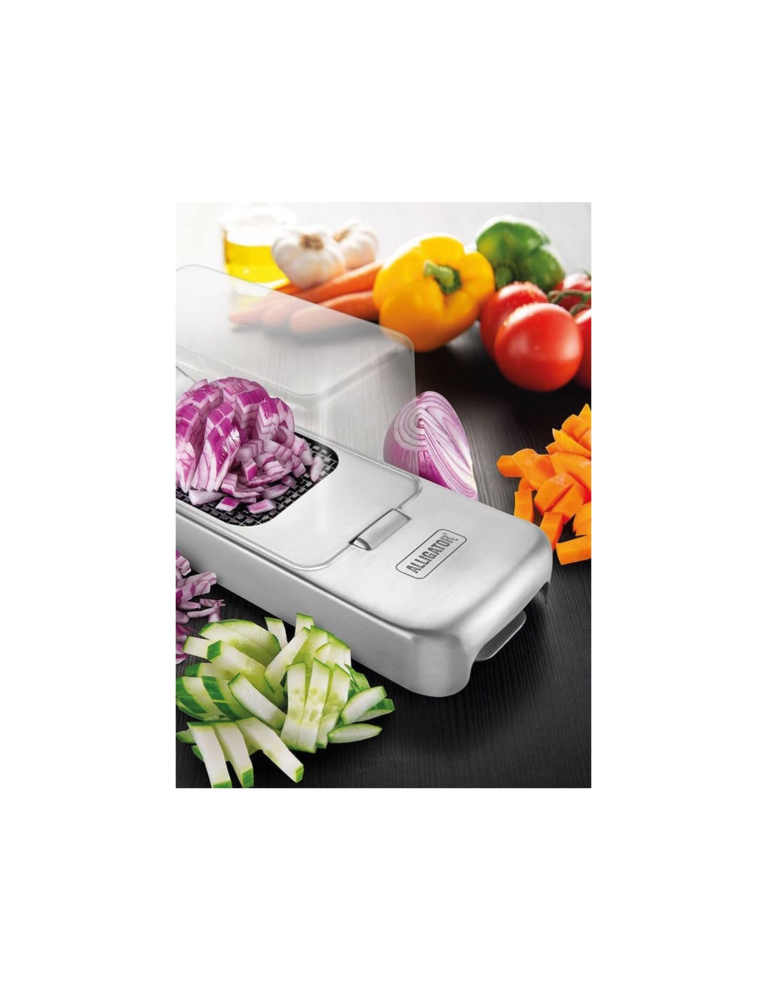 KIT MULTICORTE ALLIGATOR, ESPECIAL PARA PICAR CEBOLLAS, AJOS Y CORTAR PATATAS. ESTA EQUIPADO CON UNA BANDEJA DE GOTEO DE 1100ML. PRACTIO Y MUY FUNCIONAL. AHORRA TIEMPO EN LA COCINA. APTA PARA LAVAVAJILLAS.