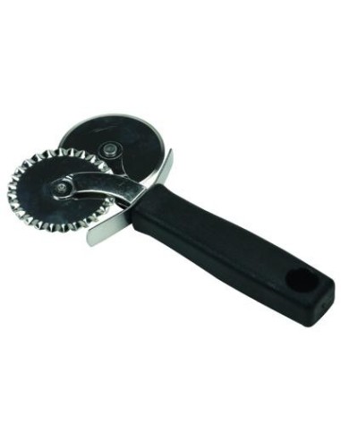 RULETA PARA CORTAR LA MASA CON MANGO PROVISTA DE DOS RULETAS UNA LISA Y OTRA DE RIZADA