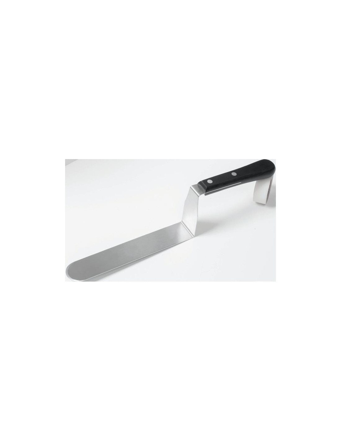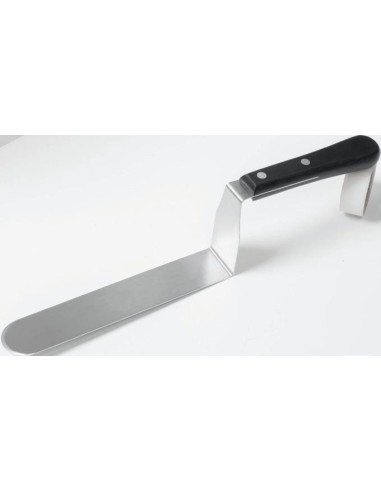 ESPATULA DE PASTELERO CON CODO RECTO A 90 GRADOS EN ACERO INOXIDABLE FLEXIBLE DE ALTA CALIDAD CON MANGO DE PLASTICO INYECTADO.