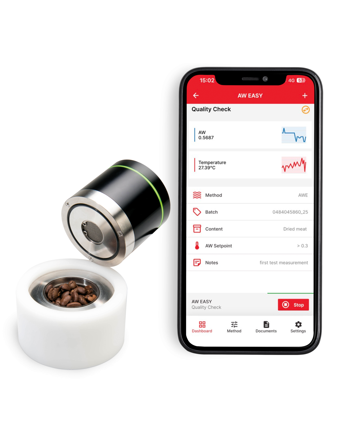 Medidor de actividad del agua destinado a alimentación, ya sean panaderías, pastelerías o cualquier industria dentro de la hostelería y restauración. Tiene una alta precisión (+/-0,008 aw). Producto muy fiable, con conexión a APP para trabajar de forma rápida y ágil, y extraer informes de forma recu Viene con un estabilizador de la temperatura que, con la función AW Quick obtiene resultados en 4-5 min. Sin utilizar el estabilizador el resultado se obtiene en unos 20 min. El medidor se puede activar o bien con el botón del propio medidor o bien desde la app. Para asesoramiento: consultar.